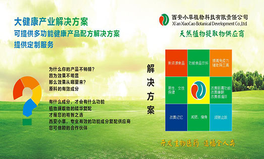 西安市小草植物科技有限責(zé)任公司成立于2004年,工廠位于西安市周至縣集賢工業(yè)區(qū),辦公室位于西安高新區(qū),一家具有進出口權(quán)的技術(shù)型民營企業(yè)。